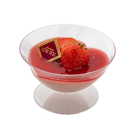 ほのかに甘い苺プリンに、さっぱりとした苺ソースを合わせました。トップにも苺を乗せた限定商品です。