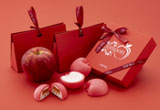 香ばしいりんごのもなかに、紅玉りんごのパート・ド・フリュイとドライりんご、たっぷりのりんごのクリームを詰めました。3つのりんごの魅力を閉じ込めた贅沢な逸品を可愛いパッケージで。
