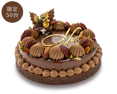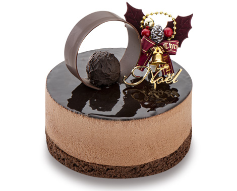 カカオ分66%の濃厚なショコラを使ったムースに、優しい甘さのキャラメルムースと、トロリとしたキャラメルクリームを入れて。ショコラ好きにはたまらないしっかりカカオを感じるショコラのクリスマスケーキです。