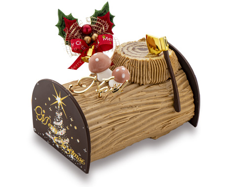 フランスの伝統的なクリスマスの薪をイメージしたケーキをアレンジ。