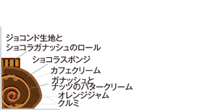 しっとりやわらかなショコラスポンジで、クルミ入りヘーゼルナッツクリームと、中心にはオレンジジャムをアクセントに。。旨味あるカフェバタークリームで包み込みました。